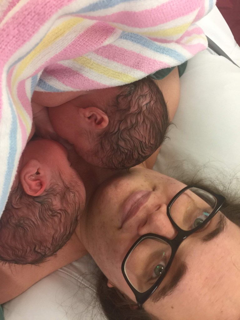 Finally the day came for our elective csection. We decided this was the safest way just incase Twin Bs skull wasn’t okay. They delivered him first, I still expected to see a huge cyst on top of his head when they pulled him out. Then out he came, screaming his lungs off, it was the most beautiful noise I had ever heard. And there it was, his head, his perfectly normal head. I’ve never felt so much relief before. He was fine! His brother joined us not long after, he too was kicking and screaming, it was the most amazing sound. They placed them both on my chest, it was such an amazing feeling. I had never been so happy before. I could finally hold my two healthy babies!